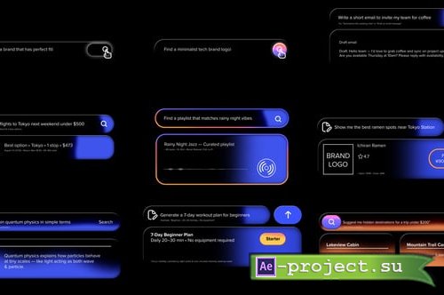 10+ Search Bar Variations: Includes designs for search, chat, playlist, travel, and AI prompts.